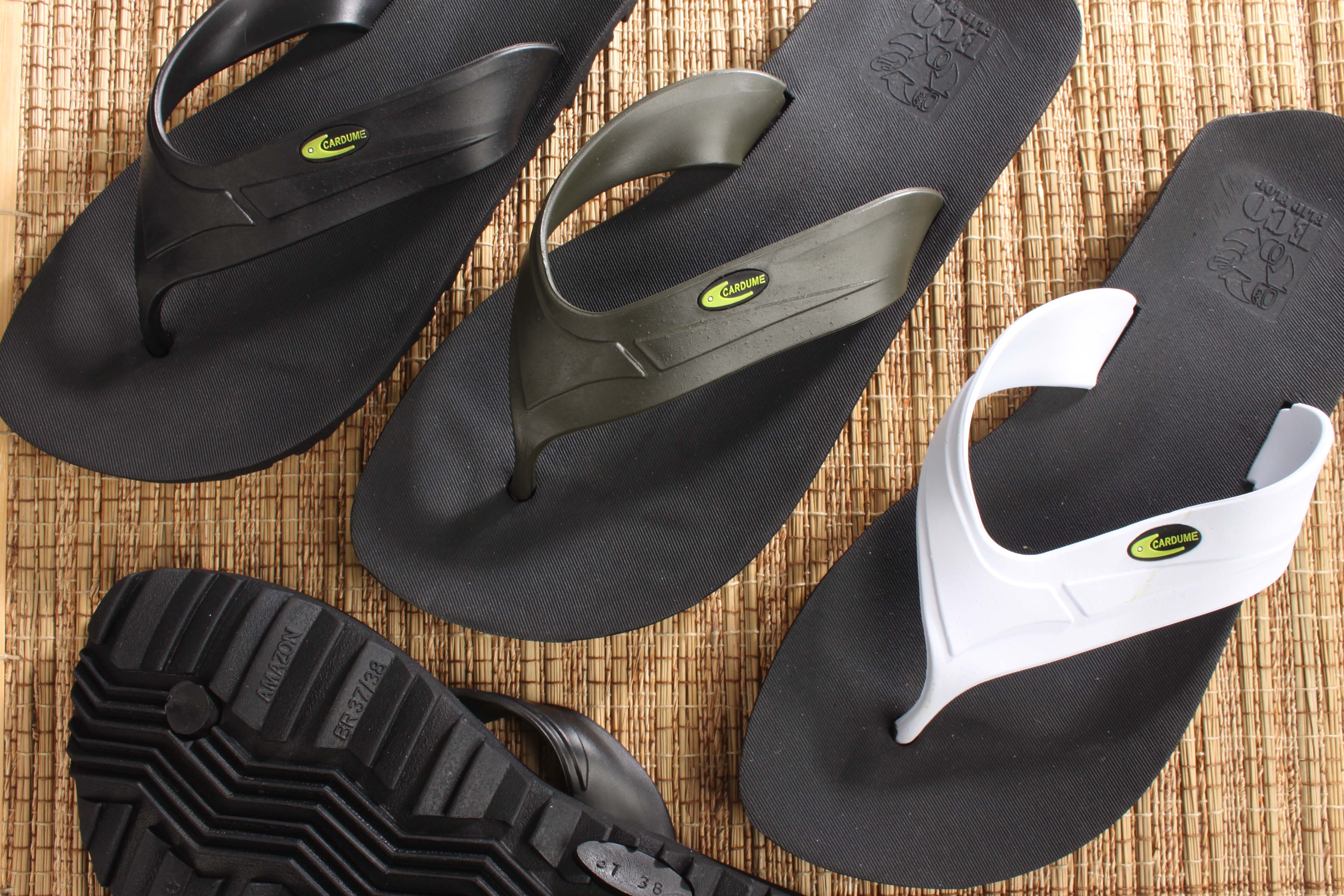A Cardume, sempre pensando em diferenciais, produziu um chinelo com sola 100% borracha natural, eco flip flop. Solado de alta performance.